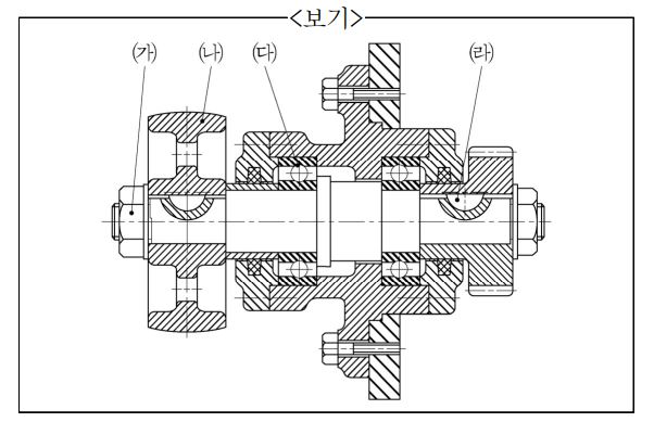 문 01. <보기>는 동력 전달 장치의 조립도이다. ㈎∼㈑에 해당하는 부품에 대한 설명으로 가장 옳지 않은 것은?