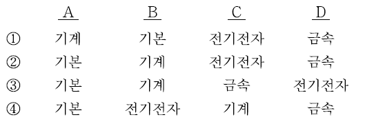 문 03. 한국 산업 표준(KS)의 대분류 A부문에서 D부문까지 순서대로 바르게 나열한 것은?