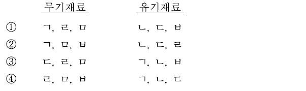 문 18. 아래의 재료를 무기재료와 유기재료로 옳게 짝지은 것은?