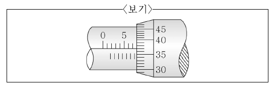 문 05. <보기>의 마이크로미터 측정값[mm]은? (단, 스핀들 나사의 피치는 0.5[mm]이고 심블의 원둘레를 50등분 하였다.)